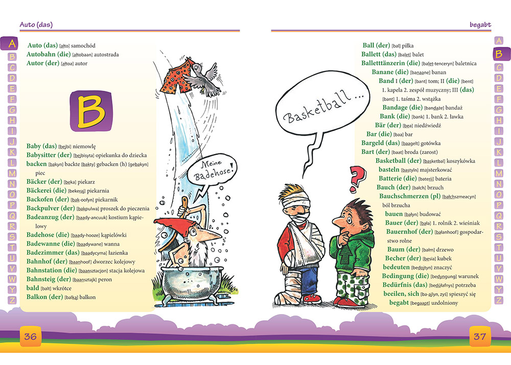 Ilustrowany słownik niemiecko-polski, polsko-niemiecki jako jedyny na rynku zawiera kompletny słowniczek polsko-niemiecki.