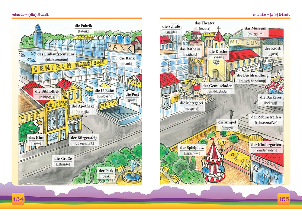 Ilustrowany słownik niemiecko-polski, polsko-niemiecki w pięknej, twardej oprawie jest przeznaczony dla dzieci uczących się języka niemieckiego. Zawartość słownika została opracowana przez nauczycieli i metodyków pracujących z najmłodszymi, dlatego znajdują się w nim słowa dostosowane do wymagań i potrzeb na pierwszym etapie edukacji.