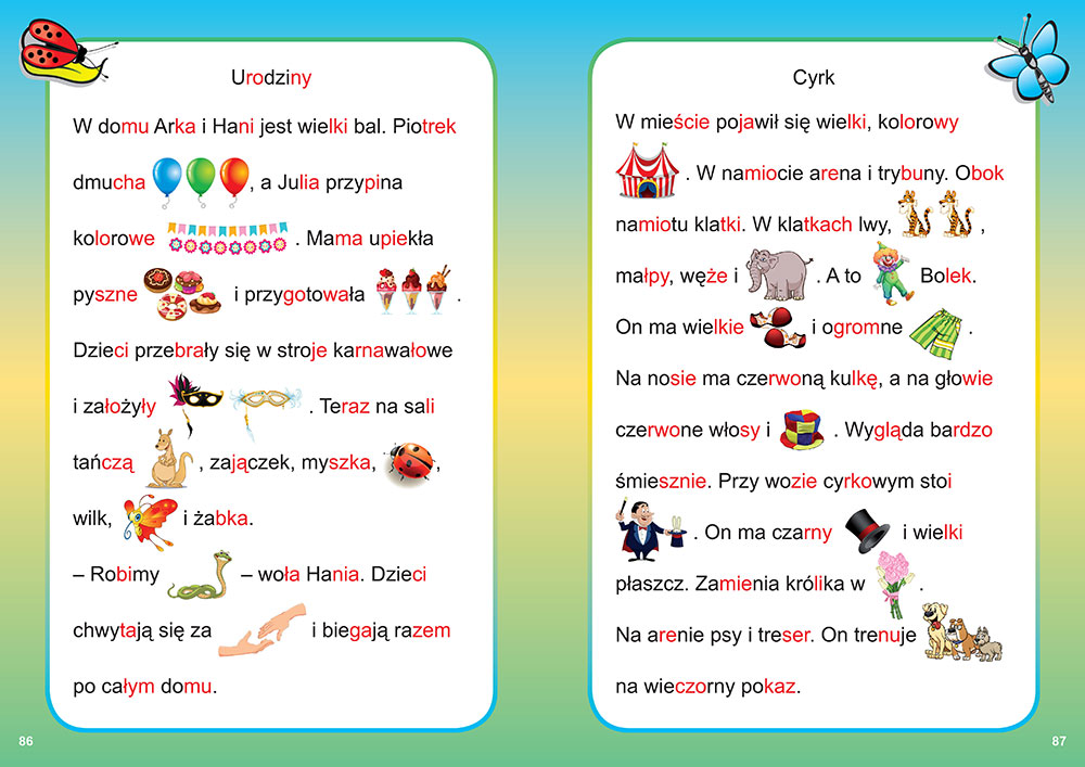 genialna książka do nauki czytania prosta i łatwe wyrazy. Moje dziecko w bardzo szybko nauczyło się czytać.