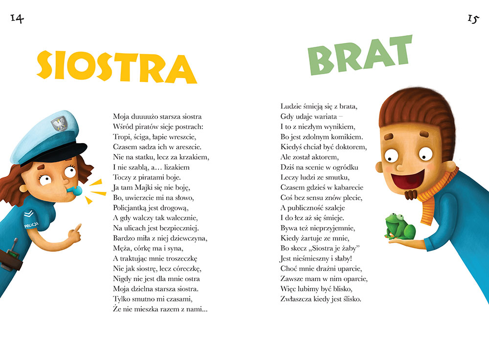Wszystko na weso³o i ciekawie. Wierszyki s± krótkie, proste i adekwatne dla dzieci ju¿ na etapie wieku przedszkolnego. Dodatkowym atutem lektury uprzyjemniaj±cym wêdrówkê przez zawi³e relacje rodzinne s± kolorowe, i równie weso³e jak tekst, proste ilustracje (...) Zbiorek by³ dla mnie ciekawym odkryciem i bardzo mi³o mnie zaskoczy³. Dzieci chêtnie wys³ucha³y wszystkich wierszyków. Niektóre czytali¶my po kilka razy. By³o przy tym du¿o ¶miechu, ale i pytañ, bo maluchy koniecznie chcia³y odnie¶æ ich tre¶æ do naszej rodziny. W ruch poszed³ równie¿ stary rodzinny album ze zdjêciami. Przygoda z tak± lektur± by³a wiêc dla nas naprawdê niezwyk³a i w sumie nadal trwa ;) Gor±co polecam wam tê ksi±¿eczkê.