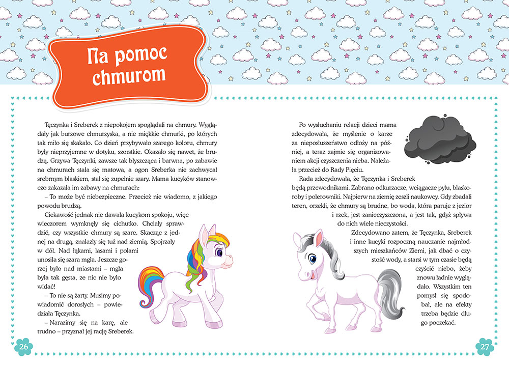 Piêkne i strojne ksiê¿niczki, podstêpne czarownice, rycerze spiesz±cy na pomoc zlêknionym dziewczêtom i urocze kucyki z têczowymi grzywami – za du¿o s³odyczy i ró¿u dla ch³opców, dla dziewczynek wrêcz idealnie. Ka¿da bajka z przes³aniem propaguj±cym warto¶ci, jakimi chcieliby¶my, aby nasze dziecko kierowa³o siê w ¿yciu (...) Kolejna ksi±¿ka Wydawnictwa GREG wydana w twardej oprawie, z estetycznymi ilustracjami i w formie przyjaznej rodzicom, tj. jedna bajka ma zawsze dwie strony. Je¶li chcemy poczytaæ d³u¿ej, przechodzimy po prostu do kolejnej historii.