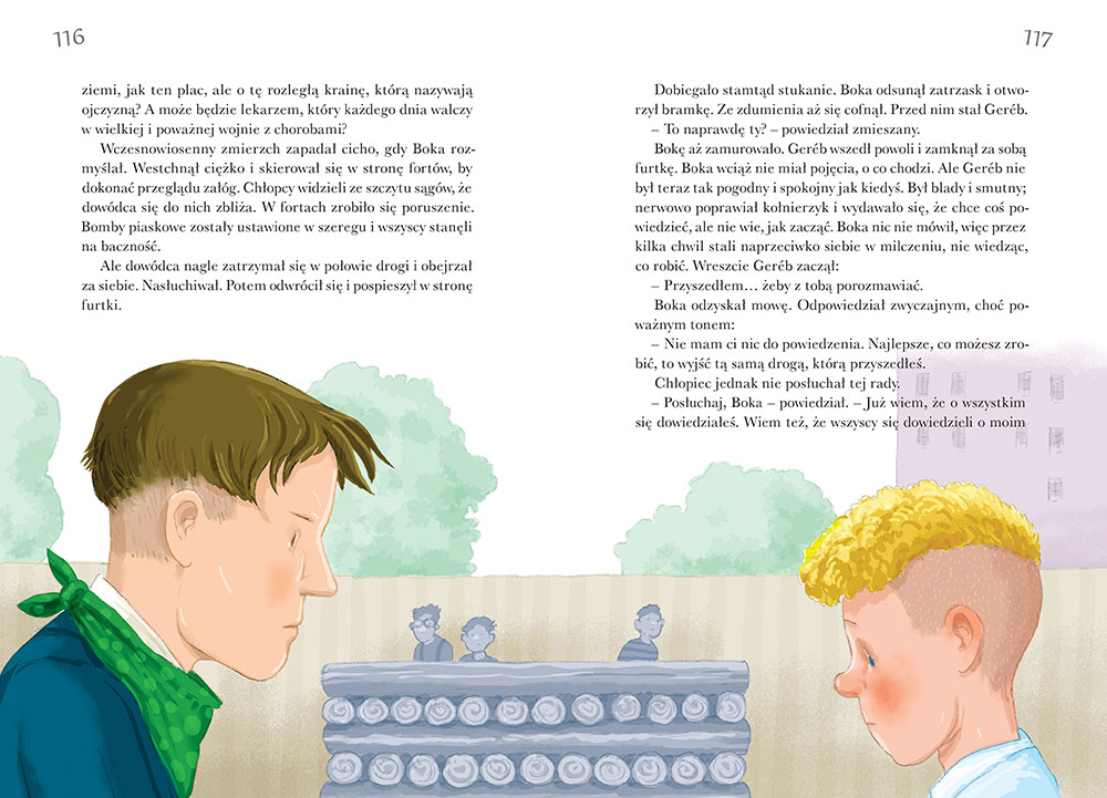 Chłopcy z Placu Broni od Wydawnictwa GREG to wydanie w twardej oprawie, pięknie ilustrowane przez Mikołaja Kamlera i przetłumaczone przez Stefana Mrowca. Wszystkie nazwy własne występują w oryginalnym zapisie. Ich prawidłową wymowę umożliwią rzetelnie opracowane przypisy oraz nagrania dostępne on-line. Polecamy!
