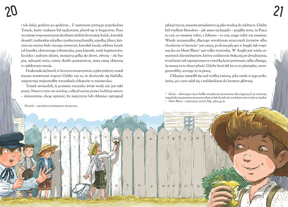 Książka pochłania bez reszty. Tak wiele dzieje się na jej kartach, że nie sposób wspomnieć o wszystkim. Tomek jest bowiem postacią niezwykle barwną i charakterną. Śledząc jego perypetie możemy również przyjrzeć się temu jak wyglądała codzienność ludzi żyjących w Ameryce pod koniec XIX wieku, poznamy panujące wówczas zwyczaje, zabobony, ciężką pracę, ale i sposoby spędzania wolnego czasu. Wiele z tych scen opisywanych jest bardzo humorystycznie, dlatego nie raz mamy okazję też do śmiechu (...) Wydanie, które Wam dziś pokazuję, jest na runku swoistą perełką. Jest solidne i estetyczne, szyte nićmi. Wzbogacone zostało również o piękne i barwne ilustracje autorstwa Mikołaja Kamlera. Dzięki temu przygoda z tą wyjątkową lekturą jest niezwykłym doświadczeniem, nawet gdy powracamy do niej po latach, czytając z sentymentu swoim dzieciom lub - jak było w naszym domu - na przemian z nimi.
