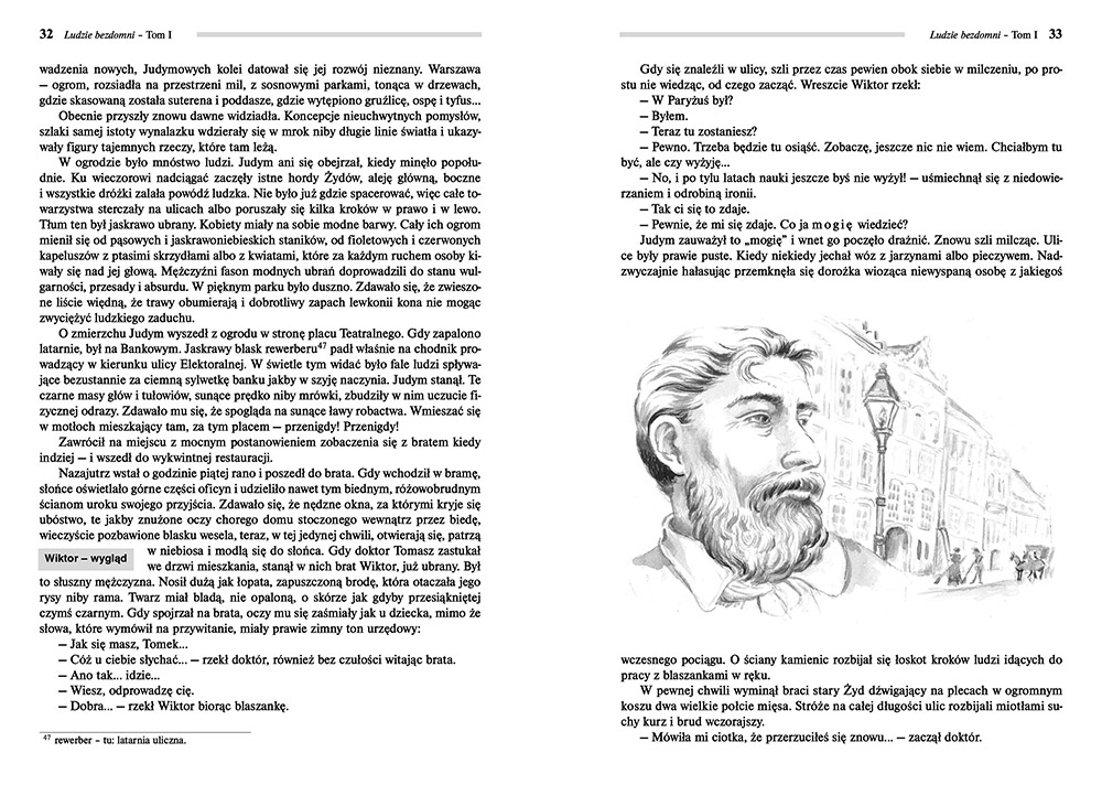 Wydanie Ludzi bezdomnych kompletne bez skrótów i cięć w treści. W tym wydaniu znajdziesz odpowiedzi na pytania z podręcznika - „pewniak na teście”, czyli wskazanie zagadnień, które zwykle pojawiają się w pytaniach z danej lektury we wszelkich testach sprawdzających wiedzę, a także w podręcznikach i na klasówkach. Książka zawiera pełen tekst lektury. Na końcu książki zamieszczono opracowanie, w którym znajduje się bardzo szczegółowe streszczenie oraz drugie skrócone, ułatwiające szybkie przygotowanie się przed lekcją. Opracowanie zawiera ponadto plan wydarzeń, wnikliwie wyjaśnioną problematykę oraz szerokie charakterystyki bohaterów.