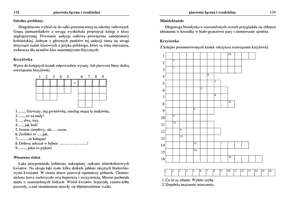 • rebusy, zagadki, krzyżówki oraz liczne ćwiczenia i ciekawe zadania